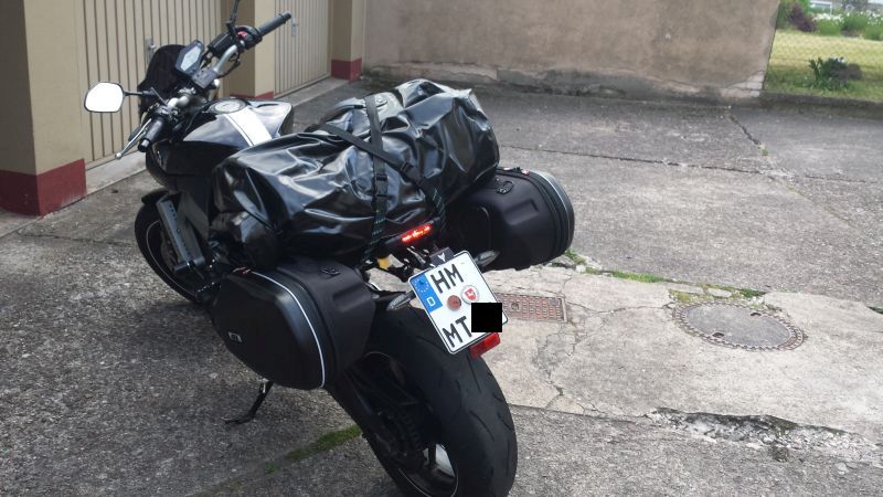 #315 Habe die Gepäckrolle nurmal zum Test mit den 3 Sachen beladen und festgemacht. Für die Sommertour wird dann auch noch mehr eingepackt.