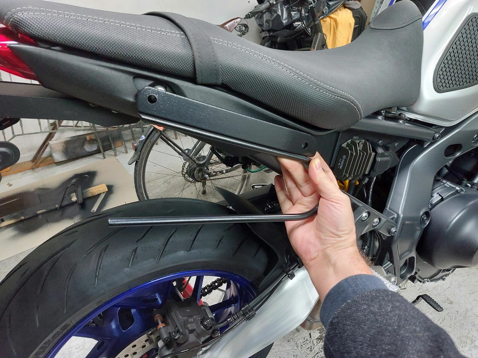 Alles anzeigenDas sind die Punkte, die quickshifter meint. Dort habe ich sonst einen Abstandhalter für Packtaschen mit Distanzhülsen befestigt. Das ist aber leider nicht in einer halben Stunde fertig.