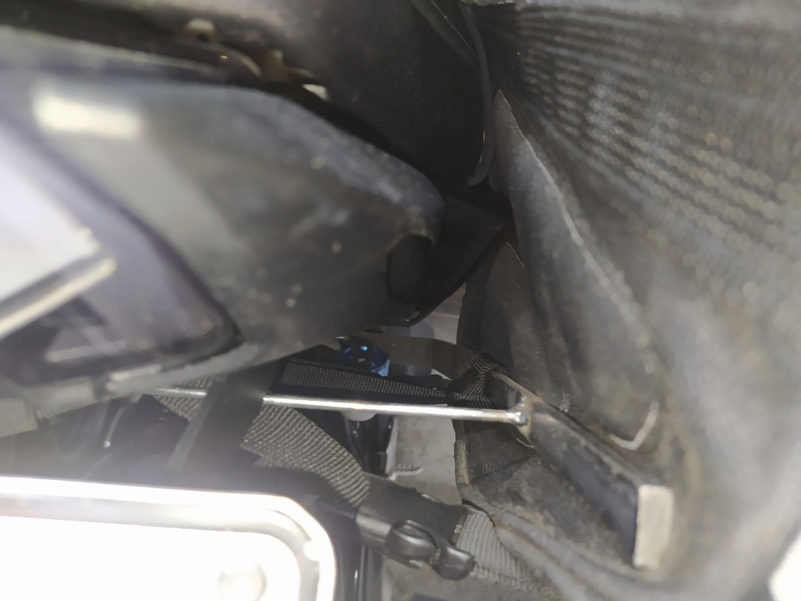 Die Längen so passend einstellen, das diese schwarzen Kunststoffdinger später ausserhalb der Sitzbank frei sind. Also das KEIN Druck auf diese durch die Bank ausgeübt werden können. Aber auch nicht unnötig zu weit rauskommen lassen. Die vier Endschlaufen (für die Haken der Tasche) sollten nicht unnötig zu weit rausragen.