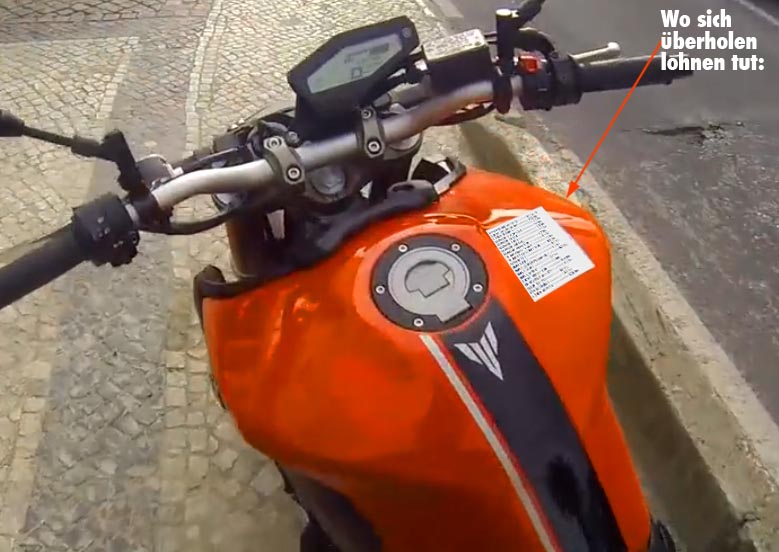 Warum ich mir keine Panigale kauf? Panigale 1199 Durchzug im letzten Gang von 60 - 140: 8,5 Sec. MT-09: 7,3 Sec. *1