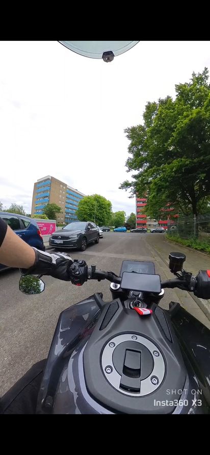 #272 Alles anzeigenMeine Spiegel kann man zwar nicht seitlich verstellen aber ich kann mir auch nicht vorstellen, dass das einen Unterschied machen würde. Hier mal ein Foto von meiner Sicht. Bei vollem Lenkeinschlag ist noch 1cm Platz zu Tank. Also, wenn dann geht nur nach außen zu stellen, aber die paar cm ändern sicher auch nichts. Werd die Spiegel dann wohl nach oben drehen müssen.