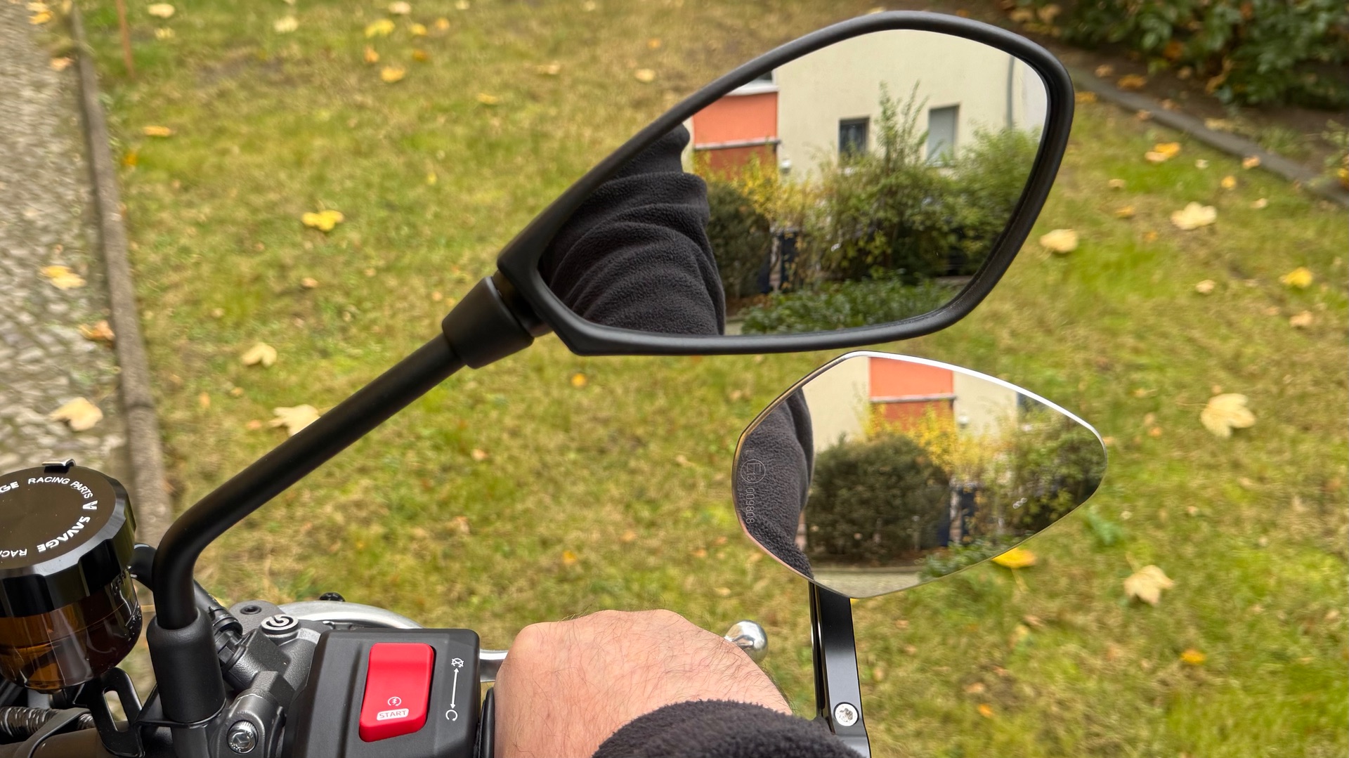 #274 Hmmm bei mir schaut es ähnlich aus wie beim Dennis… wobei meine nach Außen gedreht sind um „mehr“ zu sehen.. weiterhin könnte ich meine Halterung auch nochmal verstellen, was aber nicht nötig ist. Der Anschlag ist kein Problem zum Tank… ist voll möglich. BTW bei Deinem Foto fällt mir auf das ggf. Dein Handschuhschaft sehr weit vom Arm wegsteht.. das ist weder bei Dennis noch mir so… das könnte ggf positiv optisch dazu beitragen. Und „ja“ .. bei dieser Art von Montage des Spiegels zählt jeder „mm“
