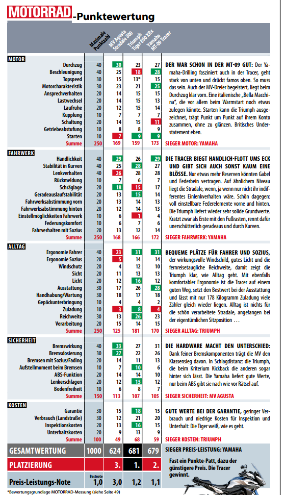 #32 Zitat von feimboAlles anzeigenIch bin ja schon gespannt auf den Vergleichstest in der 6/2015. Da soll die Tracer mit MV Augusta Stradale und Triumph Tiger 800XRx verglichen werden.