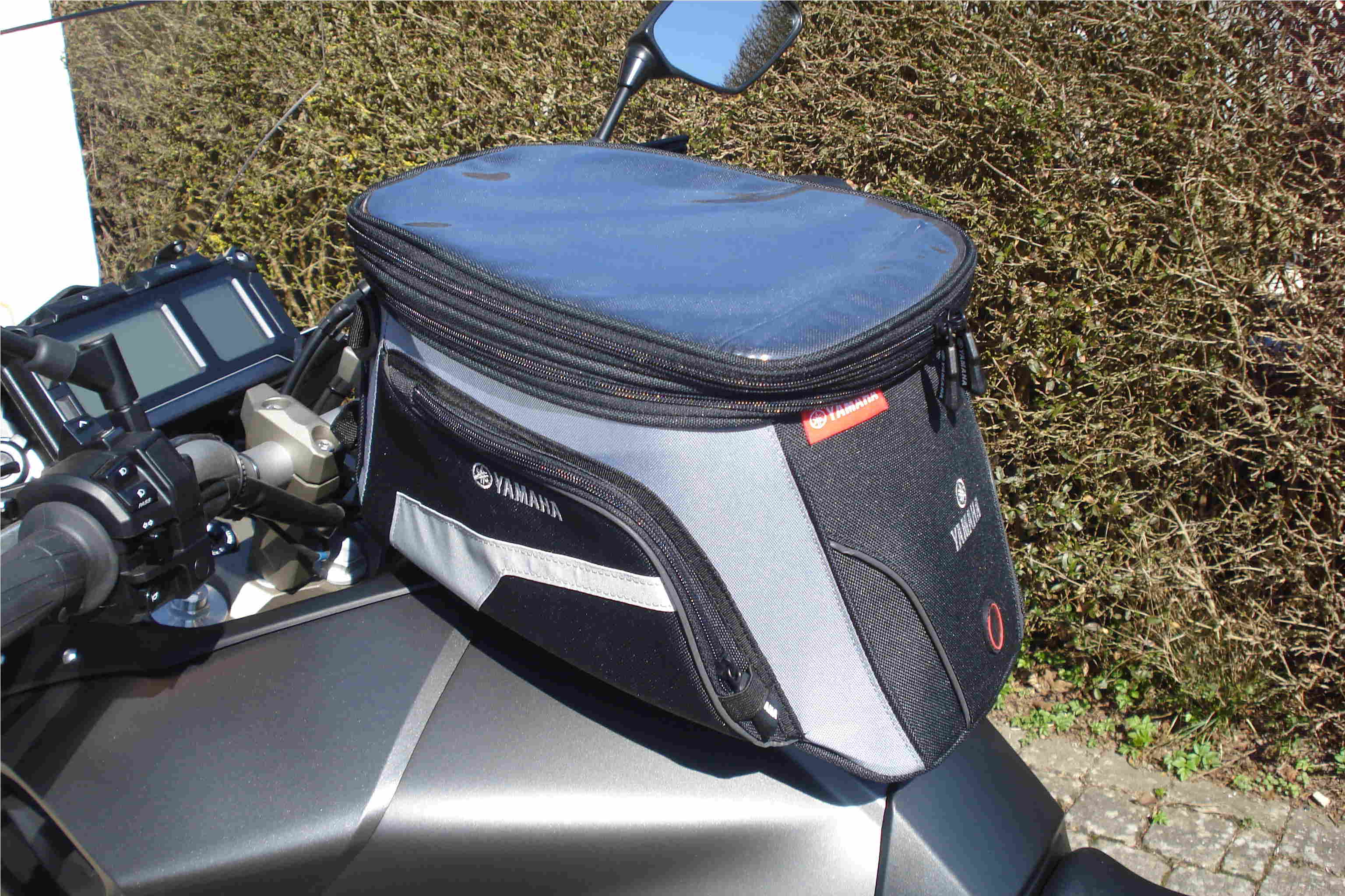 Habe heute endlich meine Tracer bekommen. Tankrucksack YAMAHA- Tour baugleich mit SW-Motech Trail und dem verschriehenen Adaptertankring von Yamaha...kann damit leben...dafür sitzt der Tankrucksack super drauf.