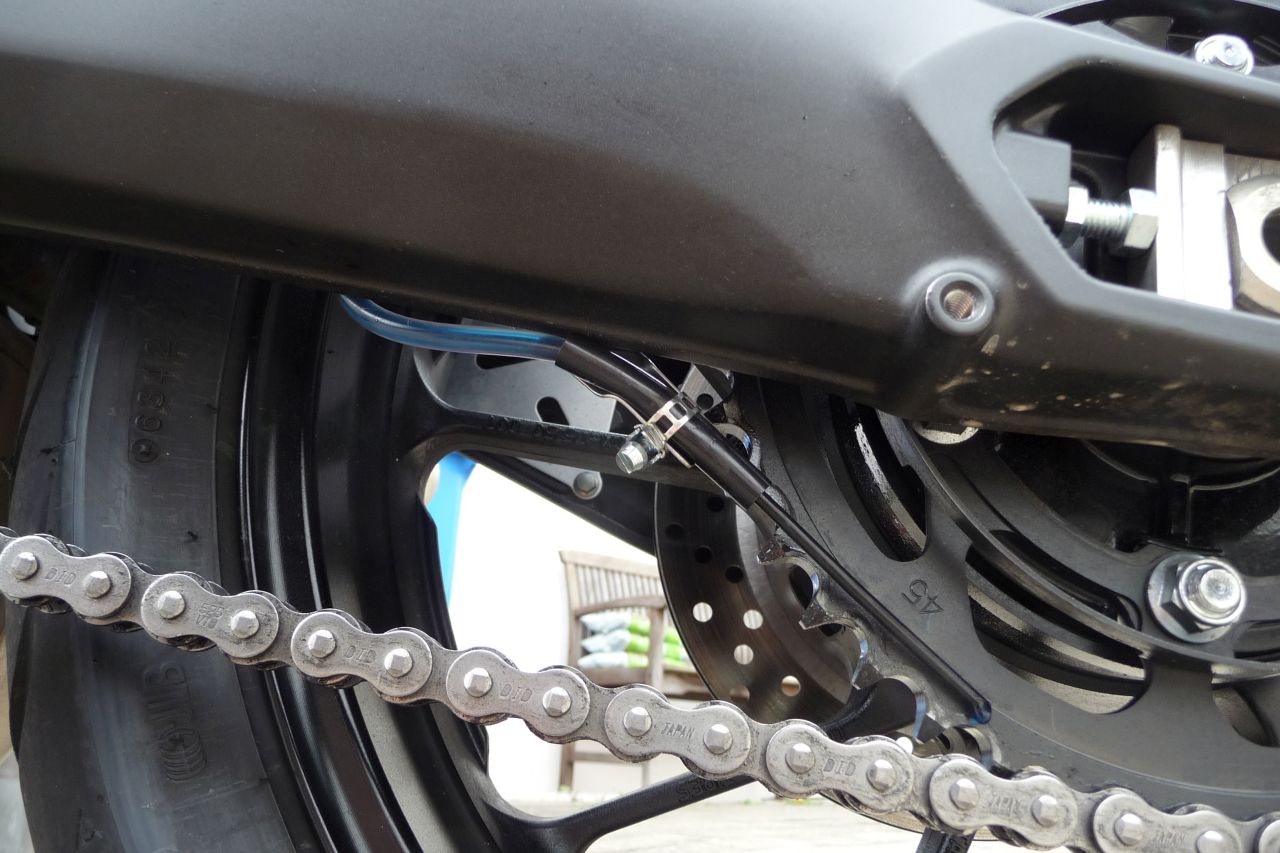 Der Händler hat die Kette dann bei der vorgezogenen 1000er Inspektion (bei 700km) aber ein Stück weiter gestellt.