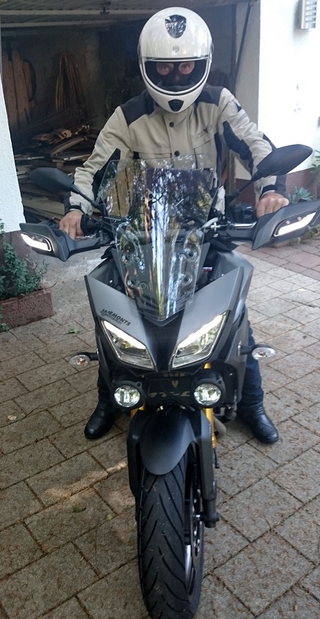 Vielen Dank an tourenfahrer900 für den Tipp. Die LED waren innerhalb von zehn Tagen aus Südkorea beim Zoll angekommen, wo ich sie ohne Probleme abholen konnte. Nun sind sie da, wo sie hingehören, nämlich an den Protektoren. Es werde Licht ...