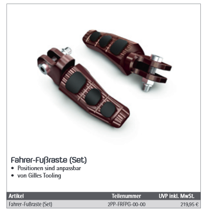 Eigentlich hatte ich mir für meine neue Tracer die Fußrastenanlage aus dem Zubehörkatalog bestellt. Damals sahen die Teile im Katalog noch so aus: