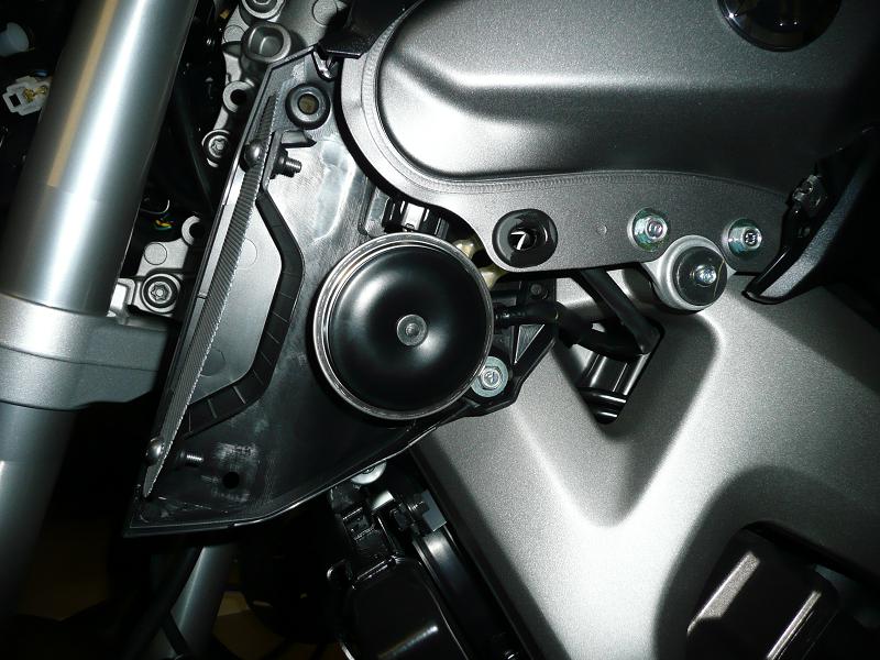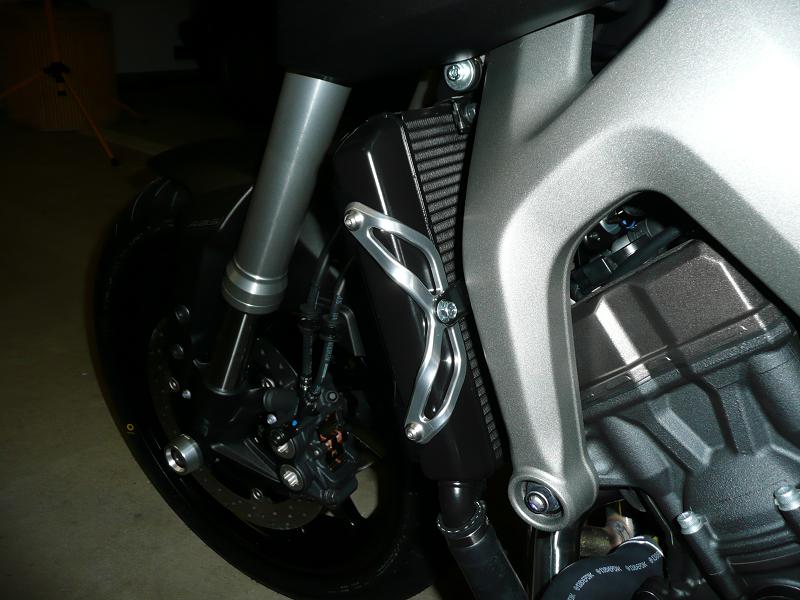 Der Kettenschutz von Yamaha (schwarz/silber) kostet € 107 und ist schlecht ausgestanzt.