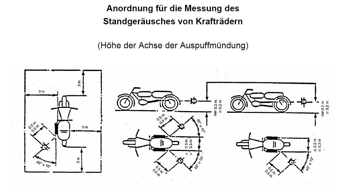 Abstand 50cm und einen Winkel von 45 Grad vom Auspuff.