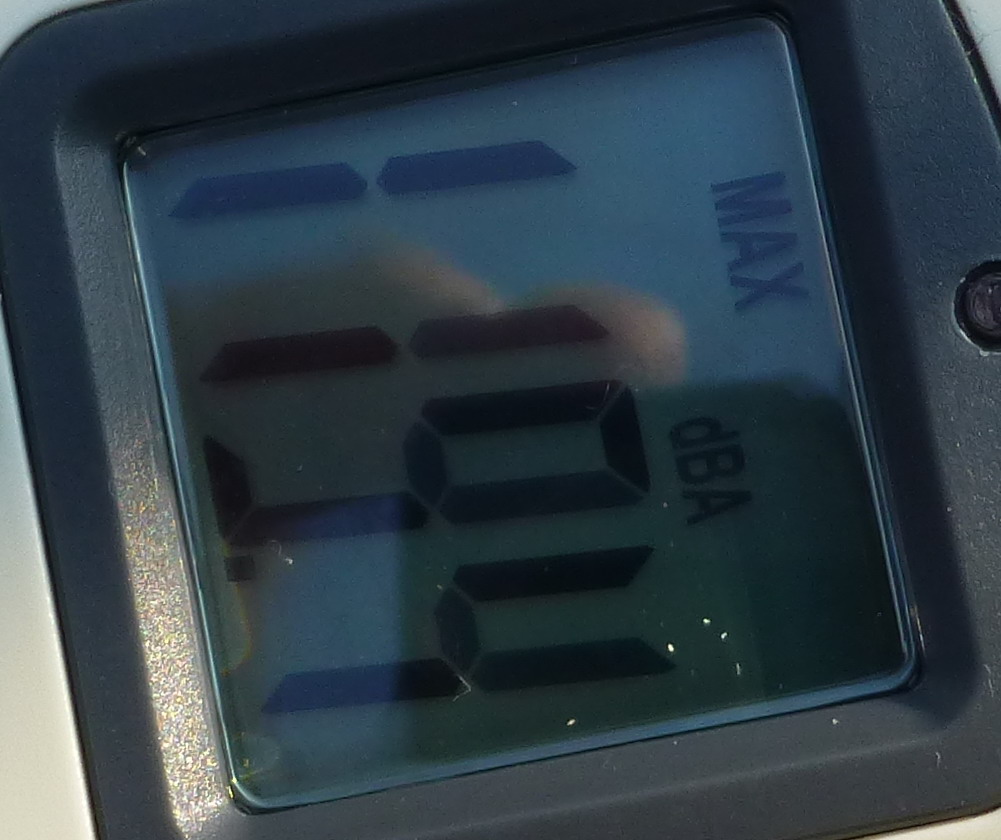 Spaßhalber noch gemessen bei konstant 10000 U/min da waren es 107,4 dbA