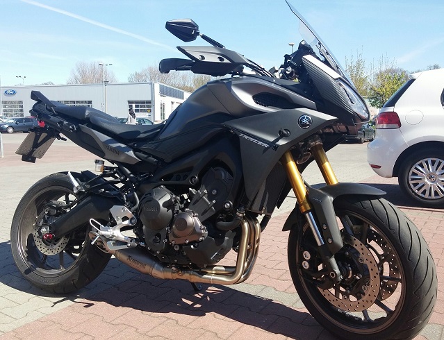 So, heute wurde der Termignoni geliefert. Beim Abbau der original Auspuffanlage musste ich feststellen, dass dafür der Hauptständer abgebaut werden muss. Anachließend konnte ich den Termi nach der beiliegenden englischen Anbauanleitung relativ zügig anbauen. Bei der Schelle jedoch, welche um den Auspuffendtopf gelegt und am Halteblech festgeschraubt wird, ist echt Fummelarbeit angesagt. Nachdem ich mir mit einer längeren Schraube beholfen und unter der Schelle das Gummi weggelassen habe, konnte ich den Auspuff endmontieren. Allerdings passt entgegen der Mitteilung des Akra-Shops der Hautständer nicht wieder ran. Egal wie man es dreht und wendet - es stösst der an der rechten Seite befindliche Anschlag gegen den Endtopf. Ich muss die Tage mal sehen, ob an dem Anschlag etwas weggeflext werden kann. So habe ich den Hauptständer erstmal nicht wieder angebaut und bin eine Runde mit dem Termi gefahren. Ich muss schon sagen, der Sound ist trotz Kat und Straßen-DB-Eater atemberaubend. Für mich hat es sich defintiv gelohnt! Habe auch ein Video gemacht. Wüsste ich wie es geht, würde ich es hochladen.