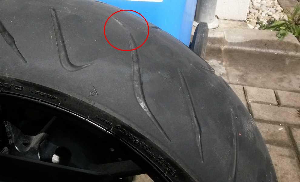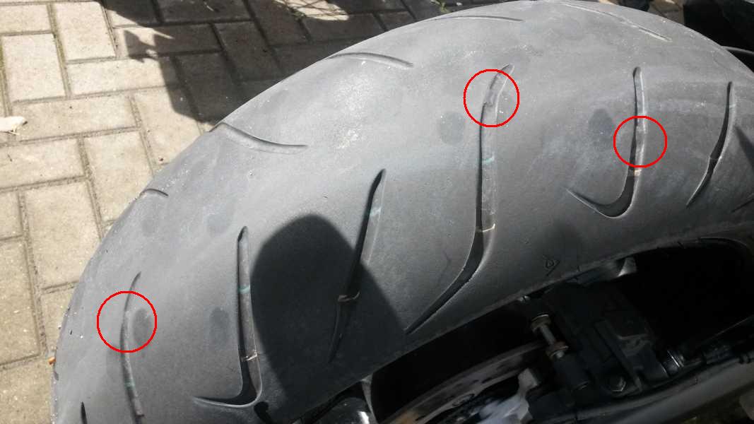 #22 so siehts bei mir aus nach 4250km. die twi´s sind 0,8mm hoch und speziell in der mitte schon berührt. und nein, ich fahre nicht immer mit durchdrehenden reifen los. ich muß einfach immer ne ganze weile fahren, bis ich hier um kitzingen ein paar kurven finde. trotzdem kann ich mir nicht wirklich vorstellen, wie man mit diesen reifen, die ja nun mal in der mitte keine härtere gummimischung haben, auf 10.000km kommen kann.