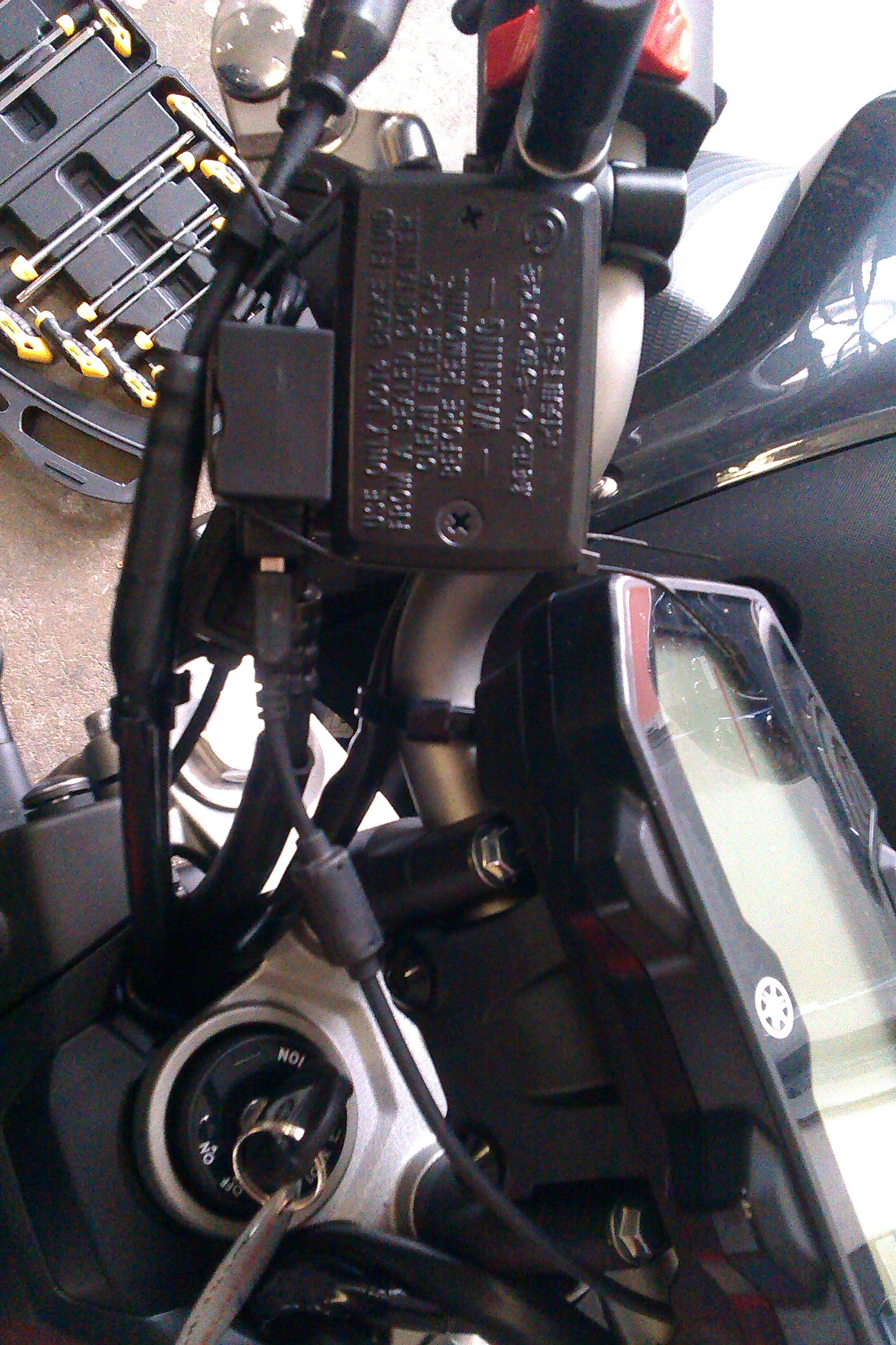 und an den vorbereiteten Zusatzverbraucher Stecker angeschlossen. Da ist auch der Kabelweg nicht weit- Habe übrigens einfach breite Pins schmal geschliffen und in den Stecker eingebaut .... geht auch ...