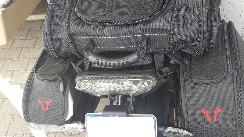 Hallo,ich habe ein ähnliches Gepäcksystem wie du (auf deinem Bild) und möchte es nun an meine MT09 montieren (2 Seitentaschen + Rolle). Beim ersten Versuch (ohne belandene Taschen) ist mir schon aufgefallen, dass die Seitentaschen in den Federweg des Hinterrads reinragen. Von Yamaha habe ich bereits Abstandhalter im Originalzubehör gefunden (109,- zur Zeit).