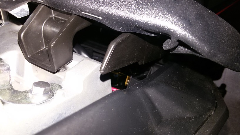 Es scheint so, als ob der schwarze Kunststoffzapfen am Heck nicht in die vorgesehen Einbuchtung einrastet, sondern etwas darüber zum liegen kommt.