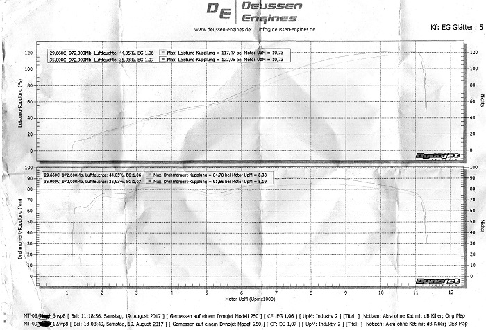 Sehr schöne Werte, bei mir sind es Max. 131 an der Kupplung und Max. 94 Drehmoment, aber kommt auch davon das ich die Akra ohne Zulassung drauf habe.