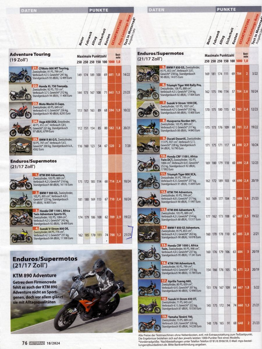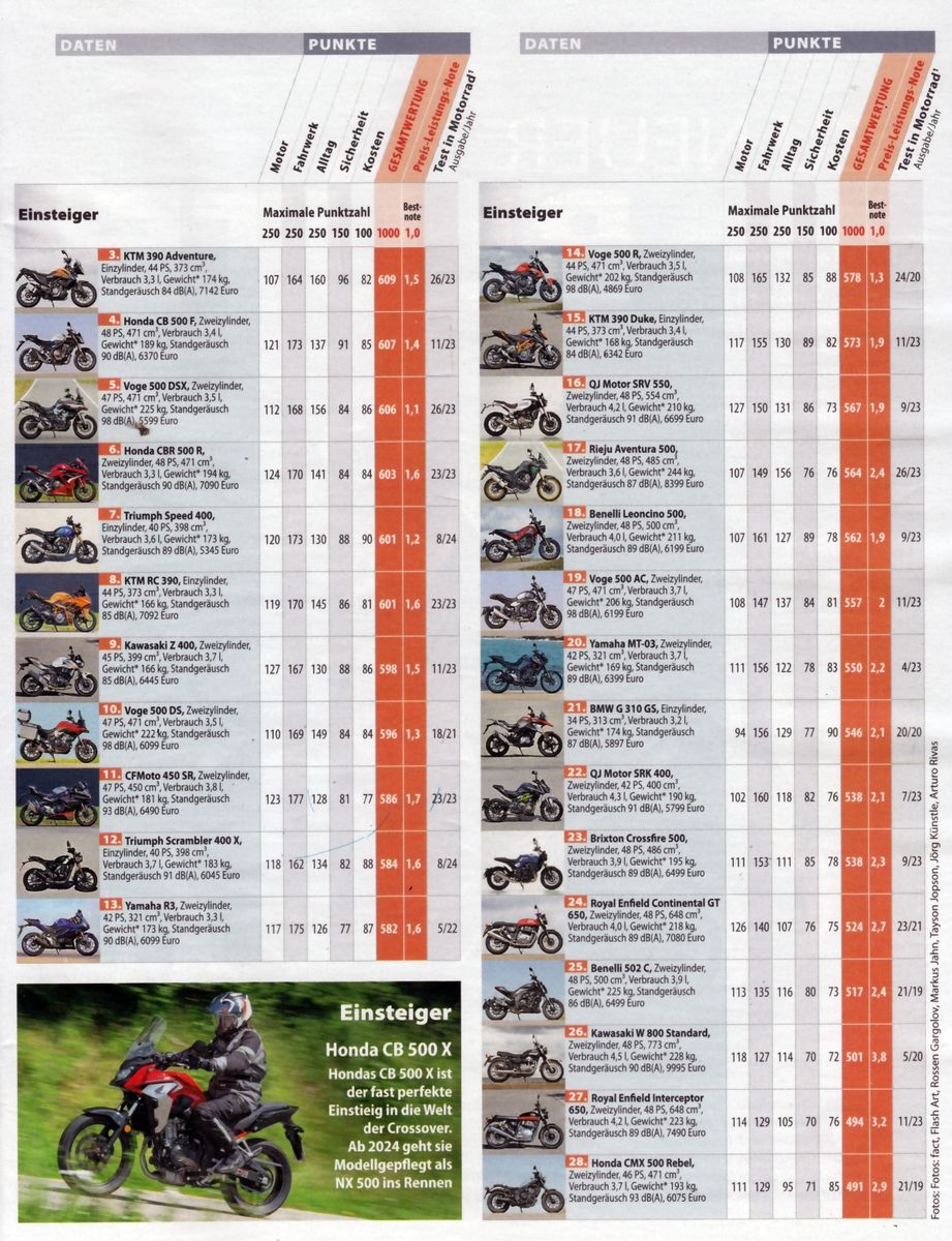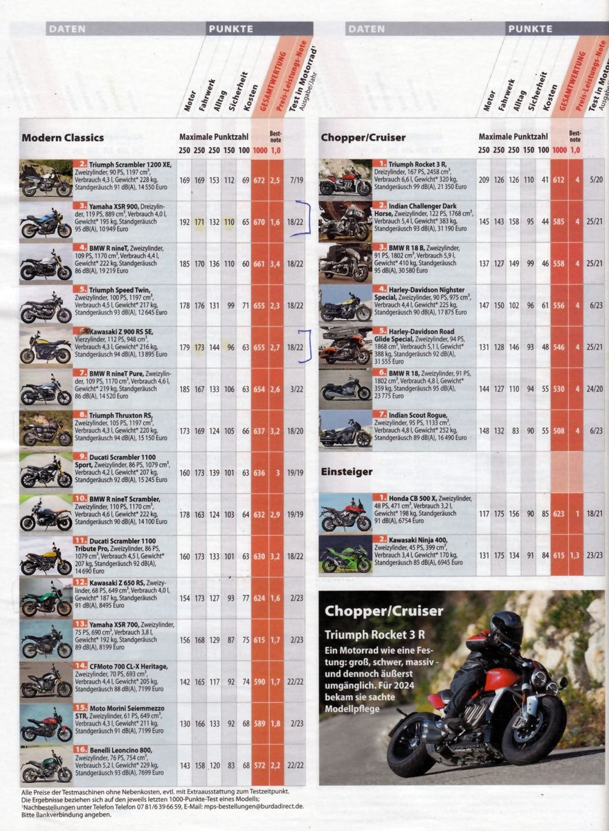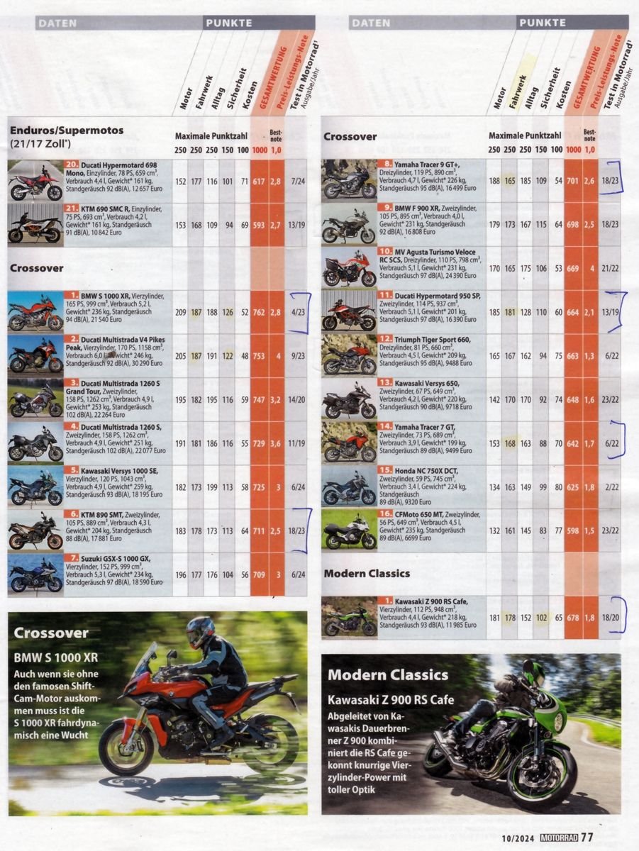 Was auch immer von den „Motorrad“ Bewertungen zu halten ist, geben sie doch die relativen Unterschiede zwischen den Bikes wider.