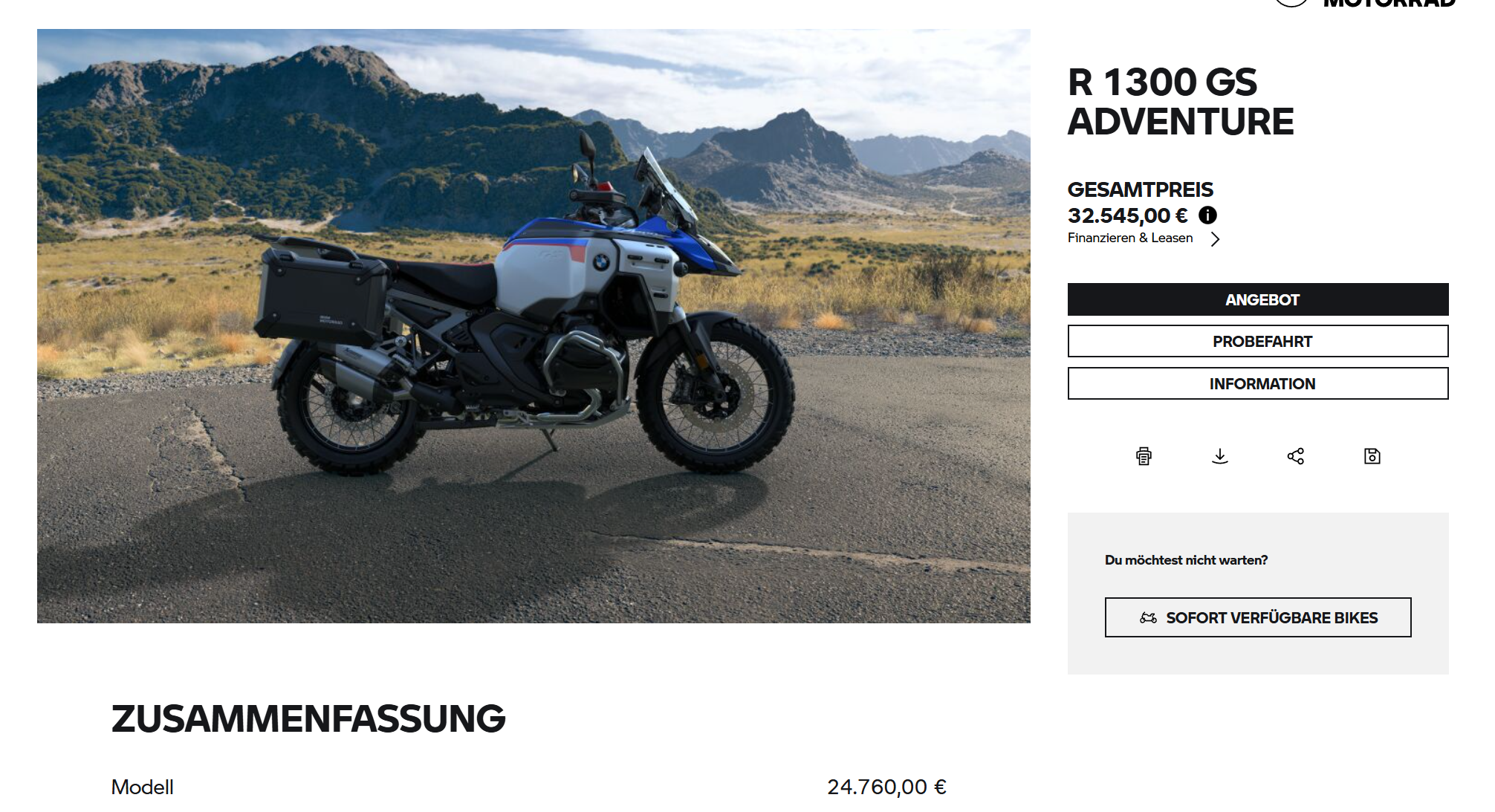 Für den Preis einer nagelneuen 9GT+ bekomme ich (mit gut zureden) bei der BMW-Motorradniederlassung in München