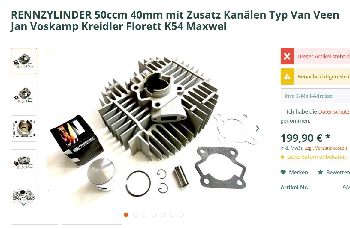 #2.730 Alles anzeigenIch wusste nicht, dass Van Veen auch für Zündapp produziert hat. Kreidler hatte ja einen liegenden Zylinder und Zündapp einen stehenden, leicht geneigten, Zylinder. Auf dem Bild ist es ja anders. Wenn es passte, fiel es aber ja sofort auf. Von Van Veen gab es auch noch eine Cross Kreidler (GS50) mit richtig viel Leistung. Die hatte 8PS und es gab einen Wettbewerbskit, mit 28er Bing usw., der dann 14PS hatte.