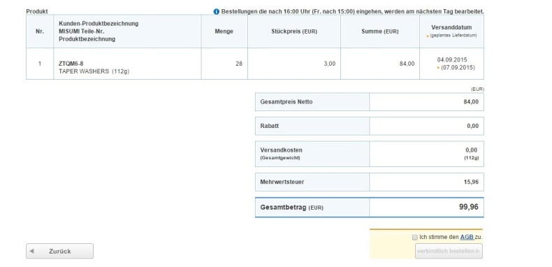 Natürlich mit Schrauben, Scheiben und Versand...los Leute, befreit mich endlich von den ollen Dingern