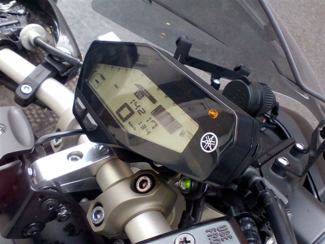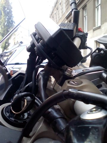 Hab das Teil durch schwarze Kunststoffdistanzen ca. 12mm höher gesetzt, da mein Navihalter, der mit nem Klemmteil am Lenker montiert ist, etwas Platz braucht.....