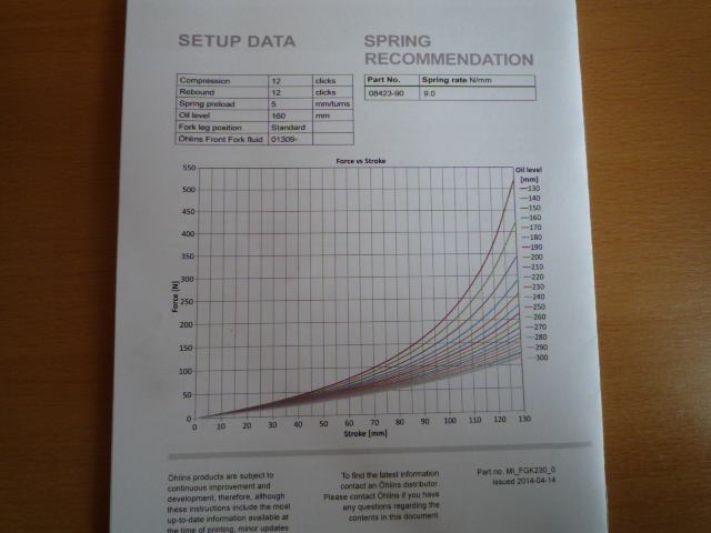 Die Gabelfedern haben gar keine Newtonmeter, weil das ein Drehmoment ist. Also die von Öhlins haben 9.0 kg/mm