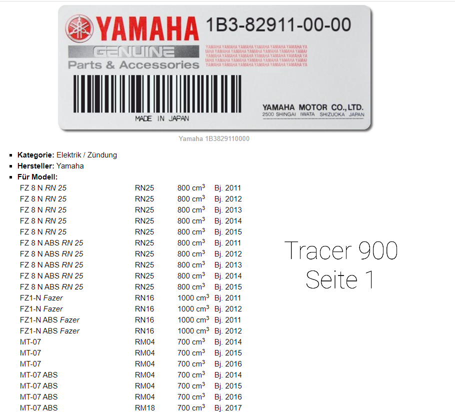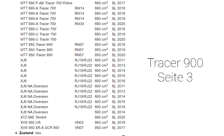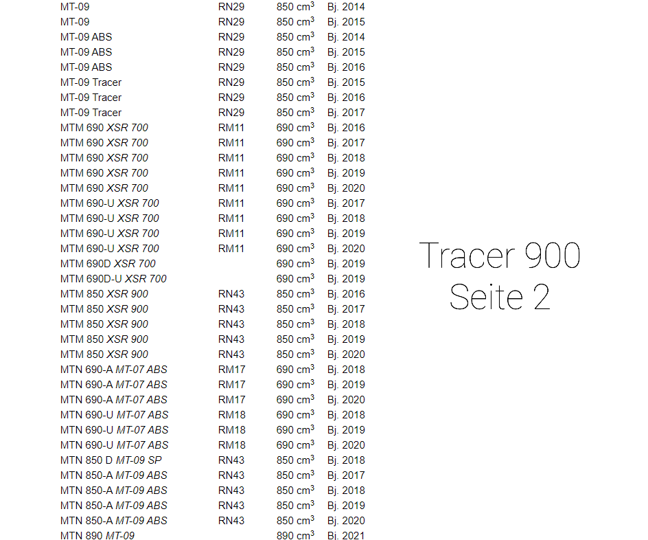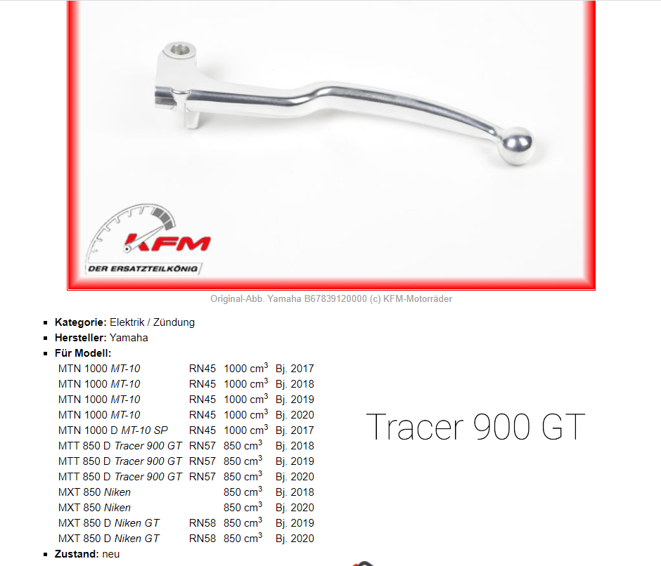 Da haben die bei Motea wohl die Zahlen der Adapter falsch zugeordnet, der Adapter für die normale Tracer 900 RN 57 ist der 200139 der für die Tracer 900 GT RN 57 wahrscheinlich der 200036, die GT braucht den Adapter, den auch die MT 10 benötigt.