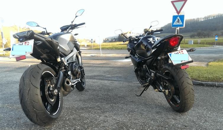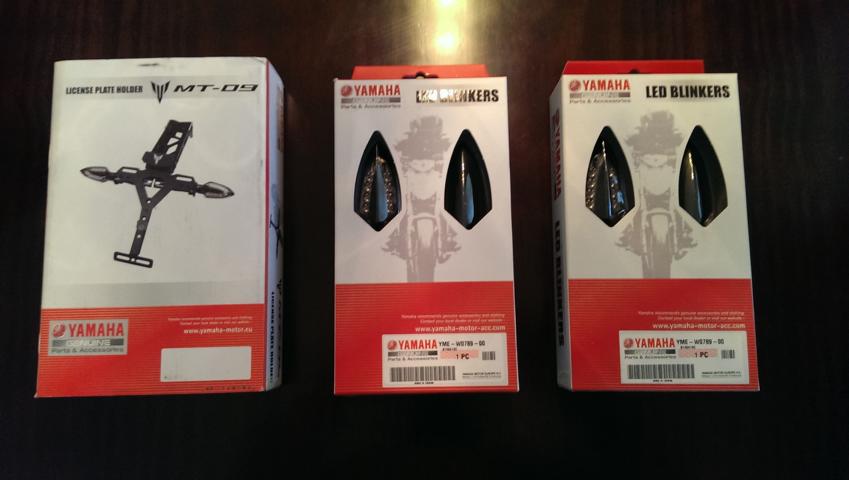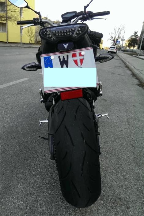 Original LED Blinker von Yamaha, kurzer Kennzeichenhalter von Yamaha, Felgenrandsticker weiß-grau GP-Style....