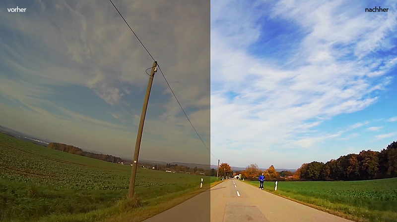 Die Vorher-Nachher-Bilder machen neugierig, also hab ich kurzerhand einen Contour-Rohling ins Studio laden wollen. Hm, "The file xxx.mov is not a valid GoPro CineForm Clip". O.K., bei genauer Betrachtung produziert die Contour avc1-codiertes Video. Also nach H.264 im avi-Container umcodiert. Leider gab's die gleiche Fehlermeldung. Was liefert die AEE S70 denn nativ? Hast du ne Ahnung, worauf das Ausgangsmaterial beim Reinladen ins Studio abgetestet wird?