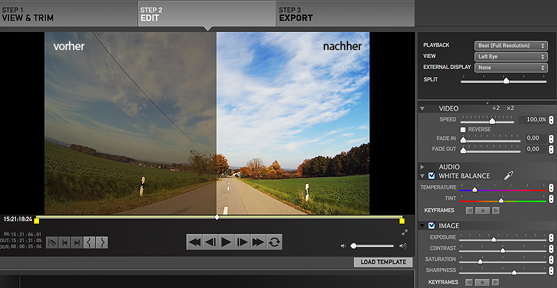 Obwohl ich die kostenlose Schnittsoftware von GoPro anfangs wg. fehlender Maskierungsfunktionen und nur einer Videospur aus meiner Testerei ausgefiltert hatte, kann ich doch nach einigen Versuchen sagen, dass sie zumindest bei der Farb- und Kontrastbearbeitung meiner Billig-Lösung von Wondershare deutlich überlegen ist (siehe nachfolgender Screenshot… hier wurden aufgrund des sumpfig und blass wirkenden Videos von meiner AEE S70 einige Korrekturen benötigt… ich hatte leider die falsche Lichtmessung bei der Kamera aktiviert). Mit relativ wenig Eingriffen lassen sich passable Ergebnisse erzielen, flüssig und ohne Kompressions-Würfel (JPEG-Artefakte) bei verbesserter Bildschärfe und Kontrastumfang sowie ohne Abrisse oder Ausfleckungen. 5 Minuten Arbeit waren für eine 25-sekündige Sequenz von Nöten. Das Ergebnis echt tadellos. Eine selektive Farbkorrektur mit Maskierungsbereichen wie bei Lightworks gibt es allerdings nicht. Dafür kann man mit wenigen Schiebereglern eine Menge aus schlecht belichteten Videos herausholen. Wir werden weiter berichten… :shhh: