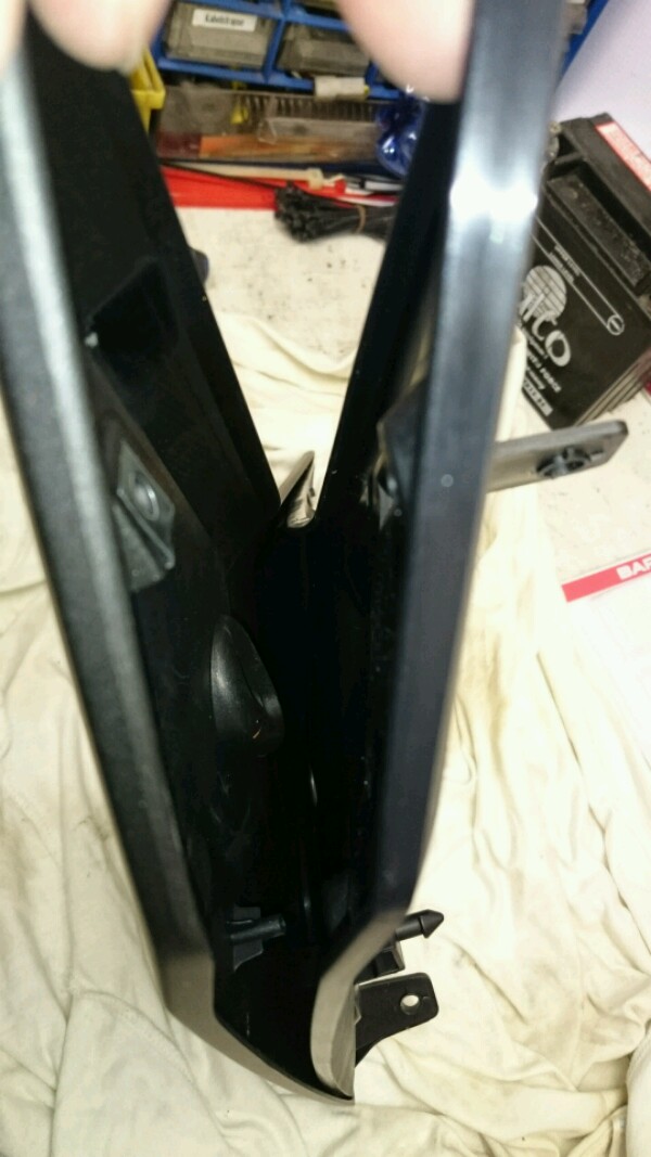 #6 Habe heute mal das Basteln angefangen. Vordere Verkleidung mit den sichtbaren silbernen Sechskant Schrauben lösen Achtung sind spezial schrauben halbe Drehung reicht und nicht verbummeln! Oben mittig sitzt die Verkleidung noch in einem Gummi Vorsichtig rausziehen. Blinkerkabel lösen.