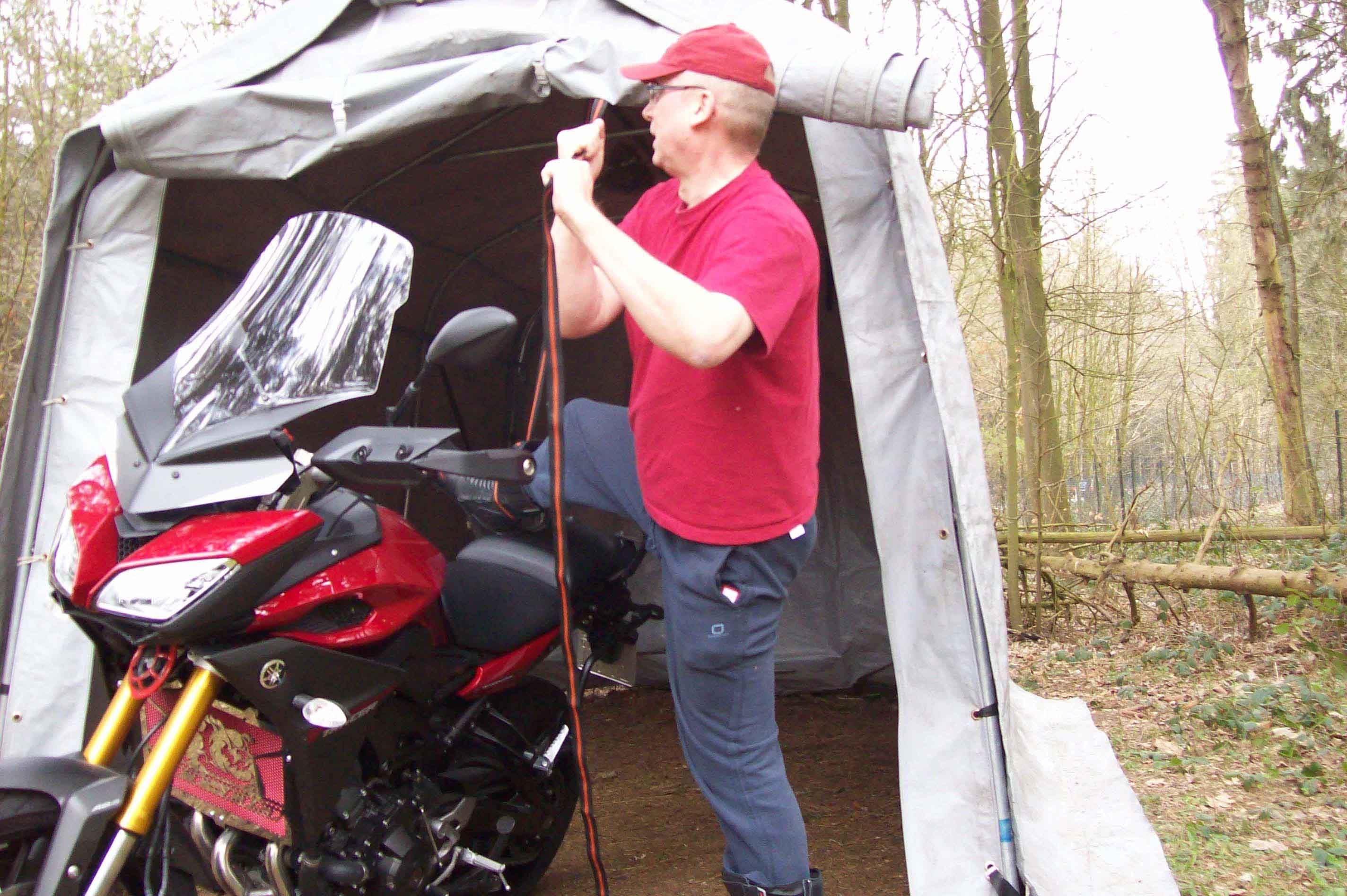 In diesem Sinne...Übrigens, ich lebe das Motorrad immer hin, schiebe mich dann drauf und ziehe es per Kette am Garagentoröffnermotor wieder hoch.
