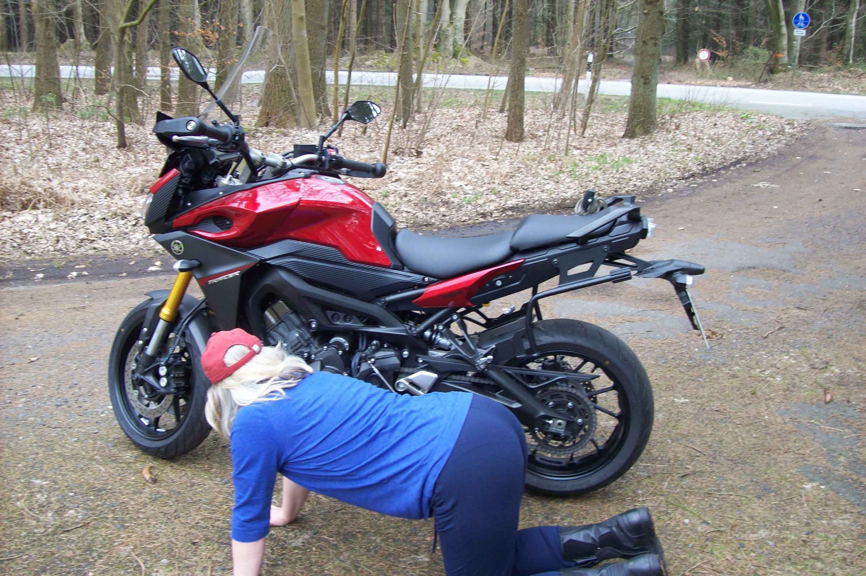 Ich versuche gerade auch noch meine Freundin von einer Fotoreihe " wie hilft eine Frau dem Mann 50+ auf´s Mopped"