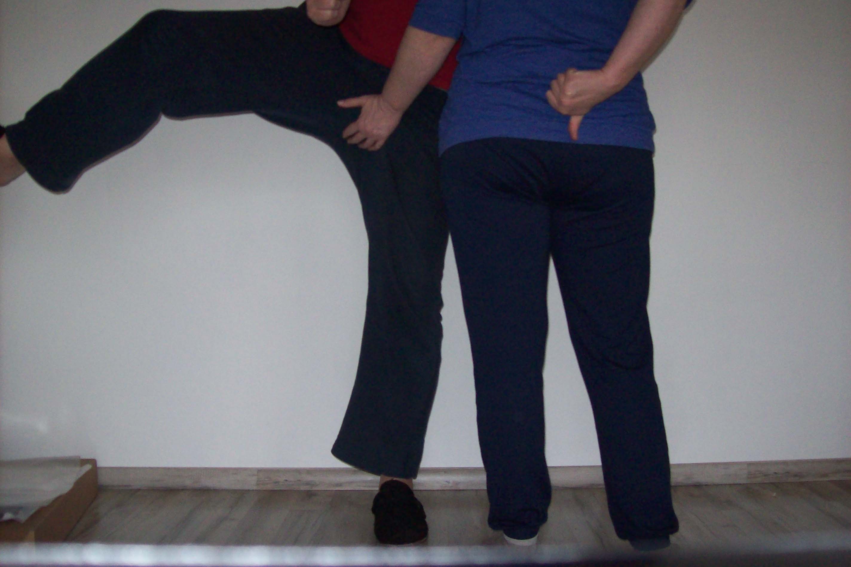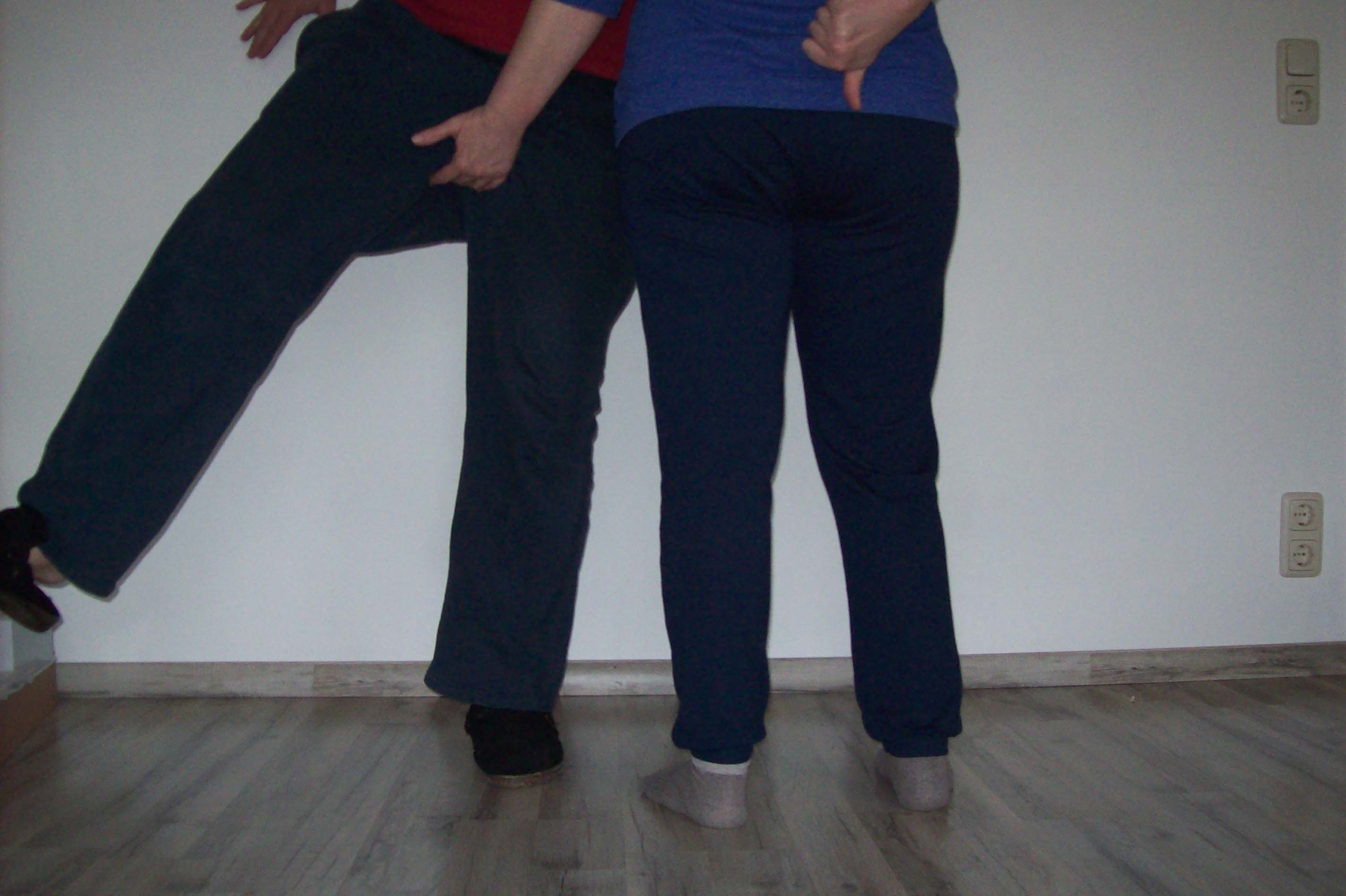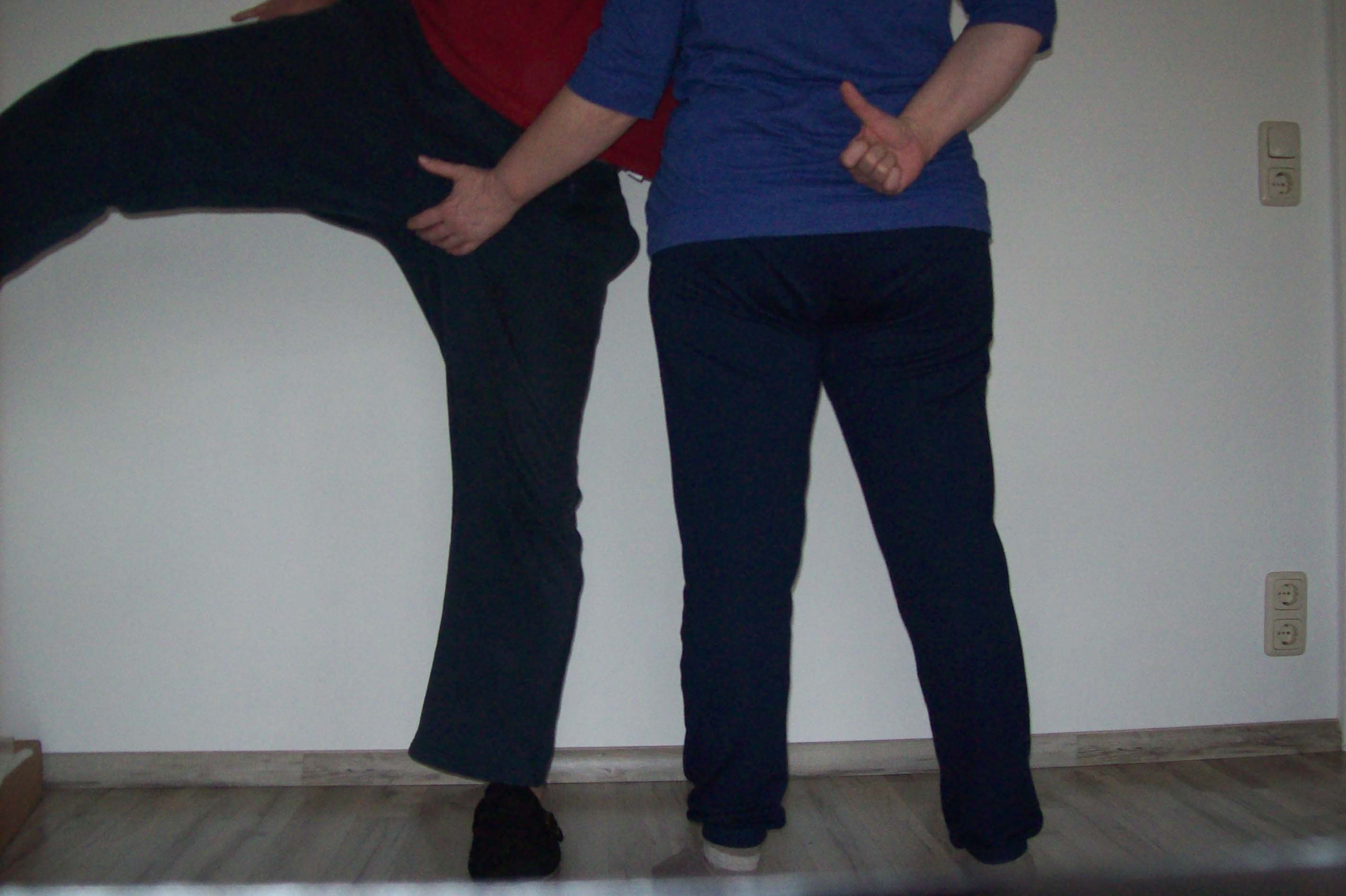 rechten Fuß führen. Dort mit einem festen Knoten am Knöchel befestigen. Nun am anderen Ende herzhaft ziehen, bis die notwendige Höhe