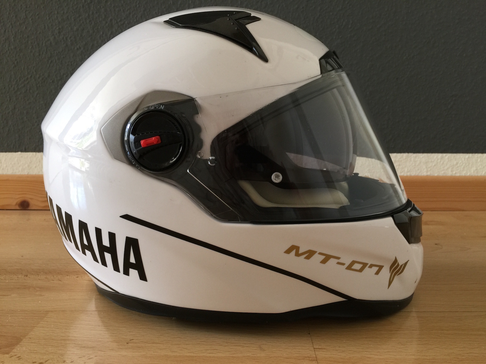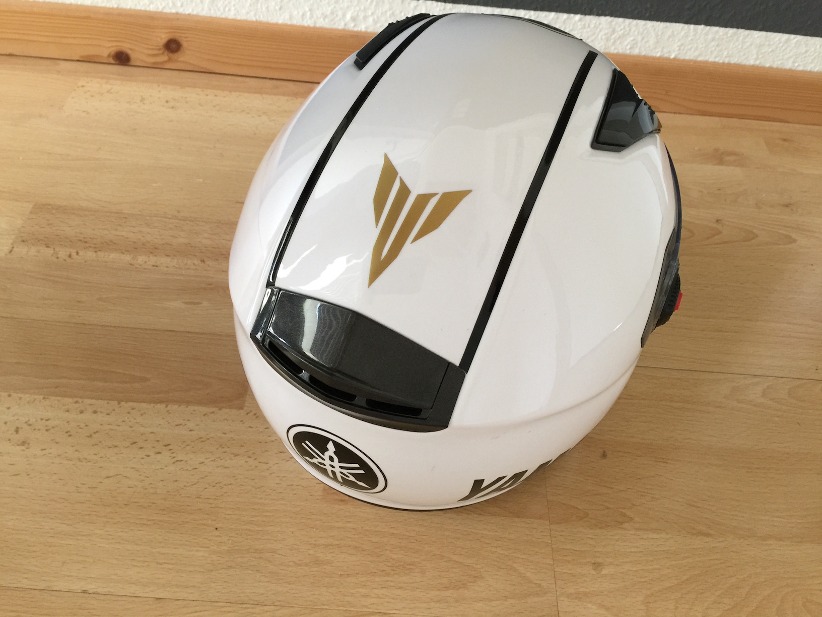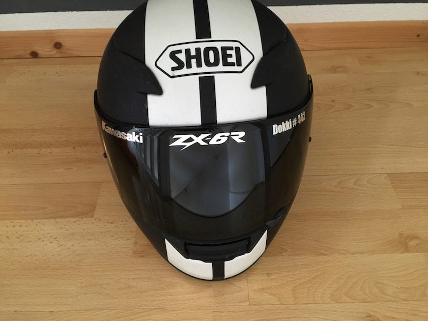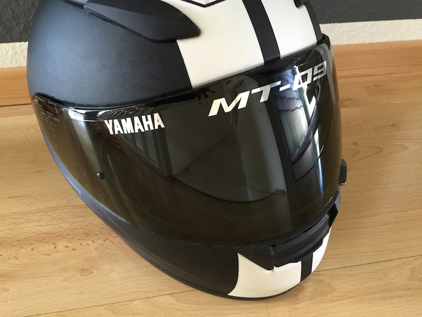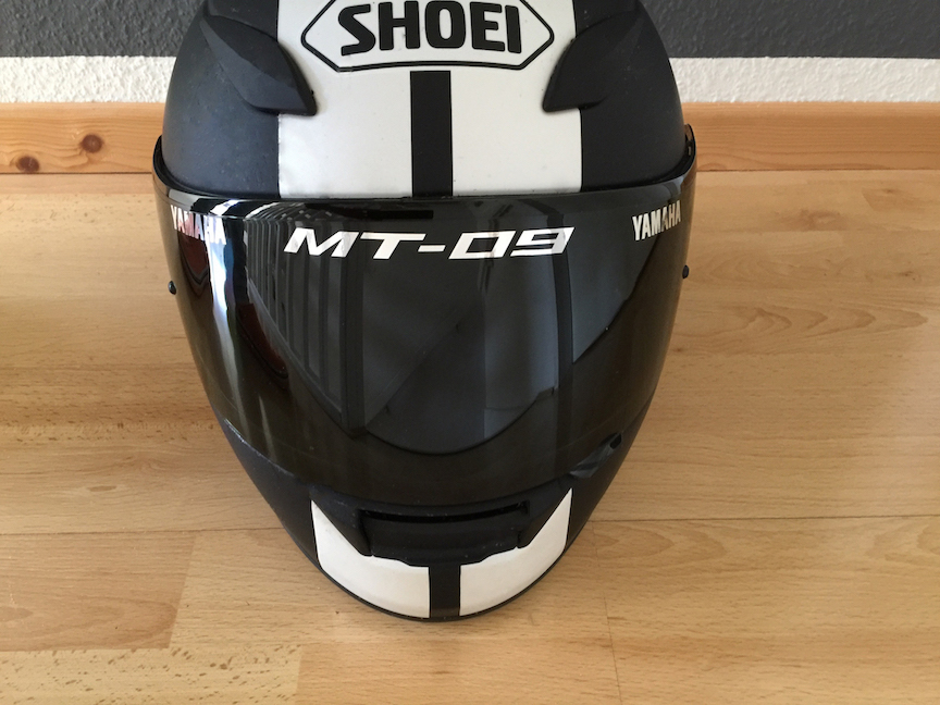 Die Visieraufkleber mit dem Schriftzug " the dark side of Japan" lassen sich nicht entgittern. Für diesen einen fertigen Aufkleber in neon gelb habe ich 6 Versuche gebraucht.