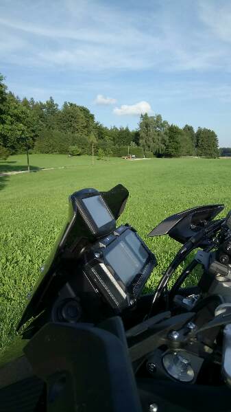 Nebenbei angemerkt ich verwende von SW motech die lenker Halterung, da bekommt das Navi selbst im strömenden Regen nichts ab.