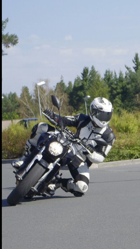 Ich selber bin kein Nasenbohrer aber ich hab nur ab und zu mal bei ganz normaler Stiefelhaltung ohne irgend welche Sperenzchen mal die Aussenkanten auf der Strasse gahabt und zart die Ausleger an der Rasten angeschliffen . Dann ists aber schon gut im Verkehr !