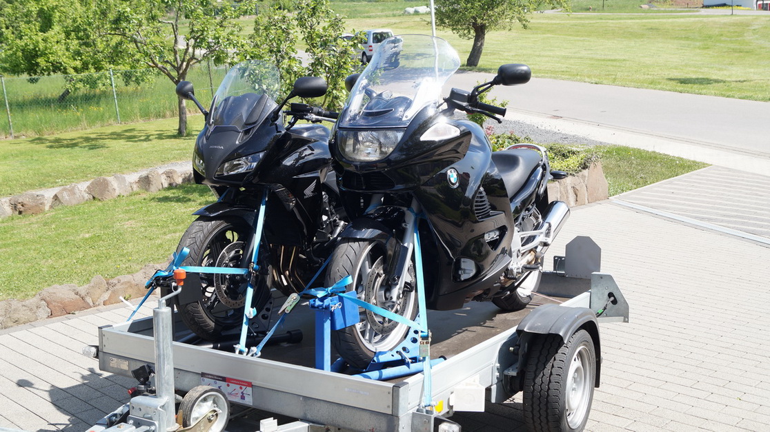 Wir wohnen hier im Rhein-Main-Gebiet und kennen im Umkreis von 100km mittlerweile alles. Wenn wir uns gut organisieren, könnten wir mit dem Hänger auch Tagestouren machen ( nächste Autobahn 2km ), zB. Hunsrück. Hin mit Hänger, da fahren, zurück. Hänger mitsamt Mopeds in die Garage, am nächsten Sonntag wieder raus und los.