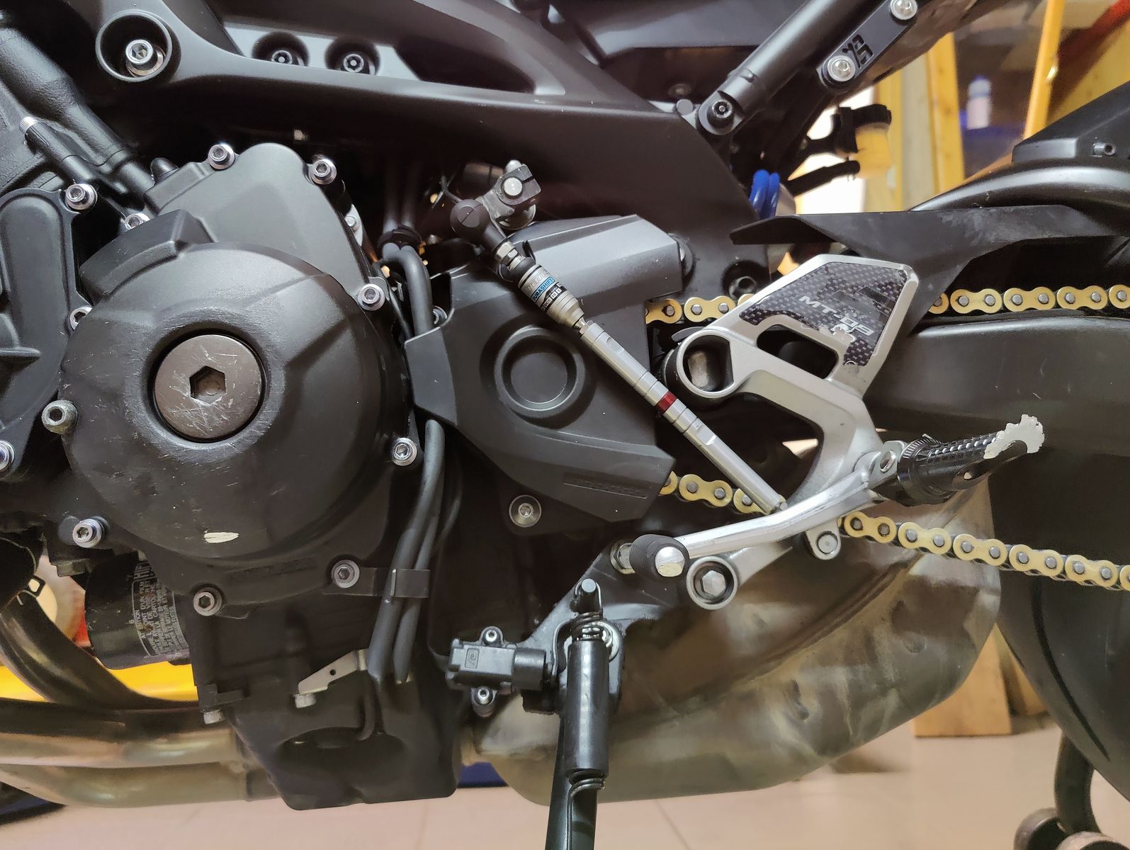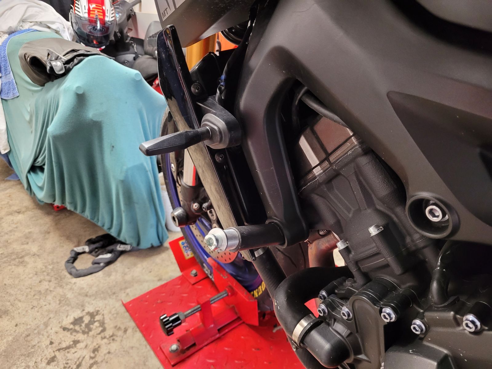 Der weit abstehende linke Motordeckel macht es halt schwer einen Schutz zu verbauen der halbwegs schräglagentauglich ist.