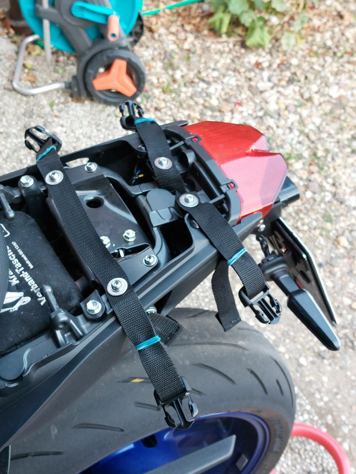 Ja, die Riemen sind unter der Sozius Sitzbank.