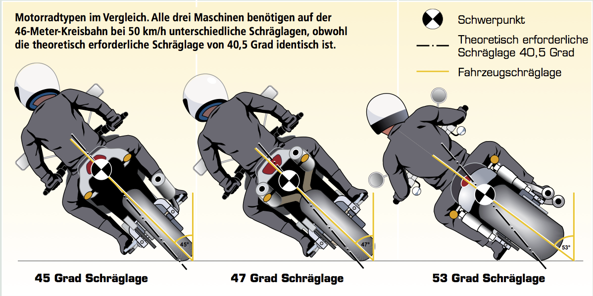 Denke auch, dass 40° Schräglagen mit dem Motorrad auf üblichen Straßen möglich sind.