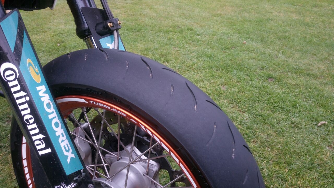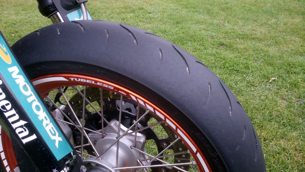 Es braucht also keinen hypertollen 7 RR, der wär mir bei meinen Reifenverschleiß viel zu teuer. Voraussetzung für so eine Schräglage ist natürlich Temperatur, und die ersten 5 Runden geht nicht viel. Natürlich kann man am Streifen erkennen wie schnell jemand ist. Das ist aber nur auf der Rennstrecke interressant, da schauen wir natürlich nur aufs Vorderrad.