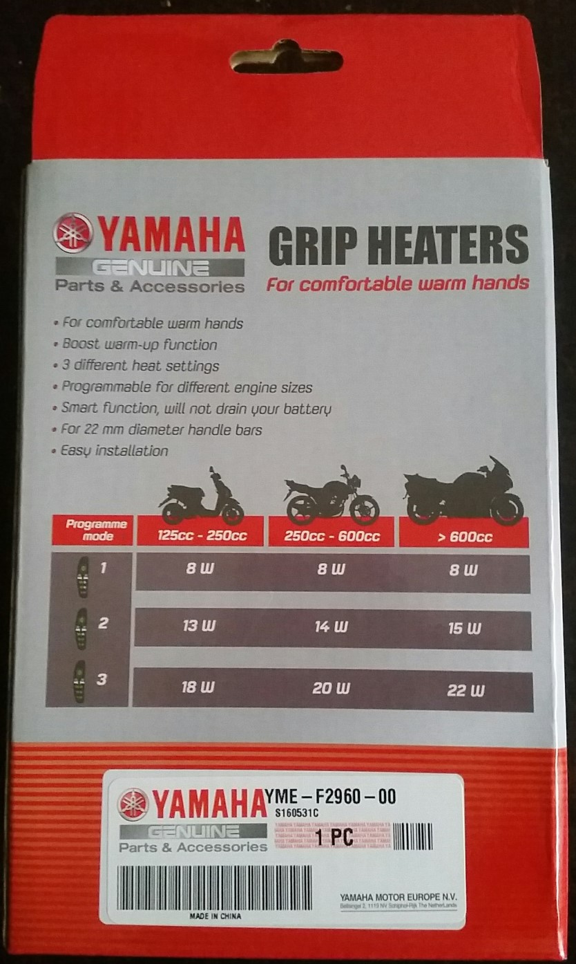 über die Zubehörgriffe der MT09 Tracer wurde mittlerweile hier schon viel berichtet. Nun wollte ich die Gelegenhbeit nutzen und euch die Yamaha Original Zubehör Heizgriffe MT09 vorstellen (YME-F2960-00-00). Entweder könnt ihr diese bei eurem Freundlichen kaufen oder wie ich über einen Ebay Händler. Habe den Link angehangen, dies ist jedoch nicht als Werbung gedacht sondern rein zur Information. http://www.ebay.de/itm/1221577…574950&cp=1&sojTags=bu=bu