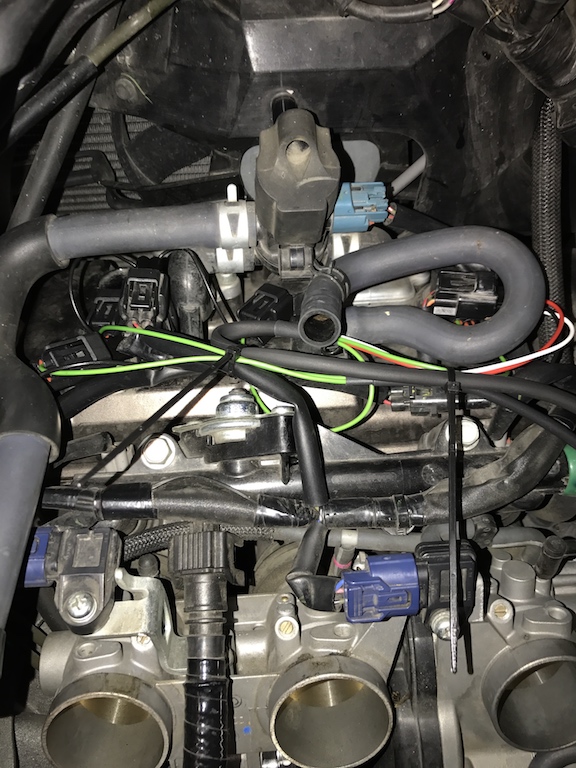 Nachdem der Translogic etwas seltsam reagierte (der Zylinder mit dem Masterstecker lief nicht mehr) und ich keine Lust verspürte, die Zündsteuerkabel zu durchtrennen, habe ich den QS von Healtech verbaut und innert einer Stunde mit einstellen via iPhone App alles perfekt zum laufen gekriegt. Das Steuergerät hatte noch im Batteriefach platz, da ich ja einen kleinen Lipo Akku verbaut habe.