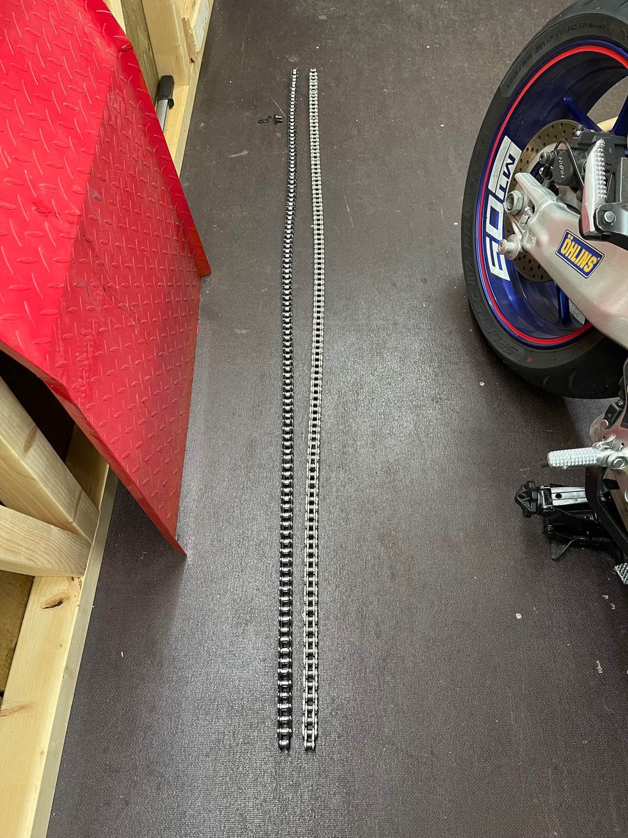 Vergleich der alten und neuen Kette . die ein Gleich weniger hat.