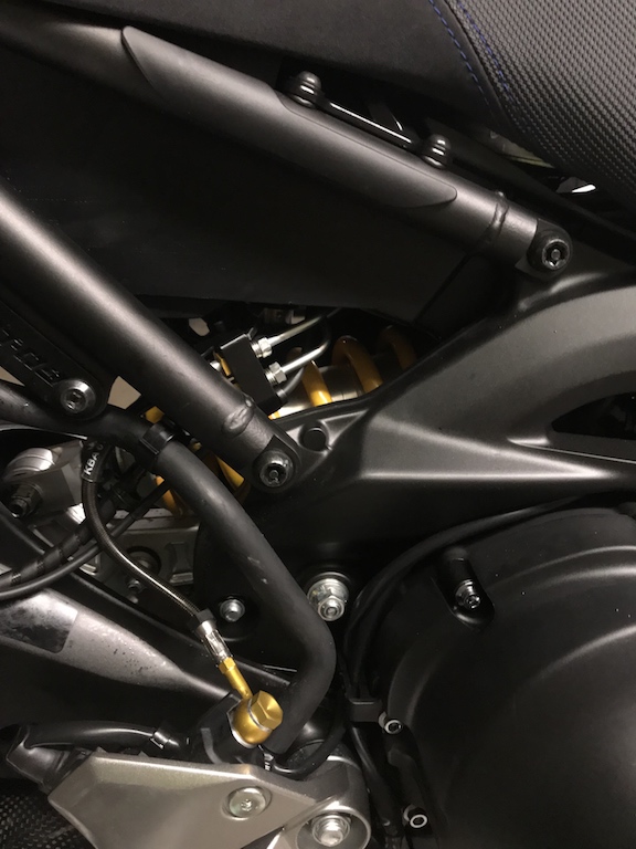 Die hinteren Bremsschläuche gehen aber nur zu den vorhandenen Stahlleitungen und müssen wieder fixiert werden, dass sie nicht mitfedern. Es sollen sich ja nur die Schläuche biegen und nicht die Stahlleitungen. DAs entlüften war mit Vacuumpumpe denkbar einfach. Nach der ersten Probefahrt konnte ich mühelos ein kleines Stoppie hinlegen. Die Bremsprobe auf losem Untergrund versicherte mir, dass das ABS zuverlässig funktioniert. Einziger Wermutstropfen, Die Anschlüsse von Xamaha mit Innensechskant sind flacher als die etwas auftragenden Zubehöranschlüsse. Aber was solls.