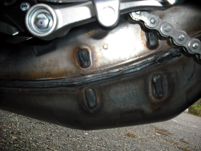 Mein Auspufftopf ist 900 Meter alt, ist ein wenig heller als der beklagte von Key.largo. So wie schon gesagt wird er wohl durch Schmutz und herumspritzendes Kettenfett auch noch brauner werden. Red mit deinem Händler, er wird dir sagen dass soweit alles i. O. ist und du es weiterhin beobachten sollst.
