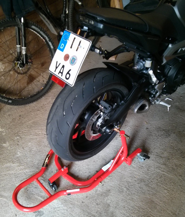 #37 ... ich habe auch lange überlegt welchen denn nun... die bobbins montiert und ja, geht alles. Dennoch habe ich mich dann doch für den Hauptständer von H&B entschieden. (Mit ABE) gefällt mir besser bei Tanken, abstellen mag ich auch lieber auf dem Hauptständer und die üblichen Arbeiten lassen sich gut erledigen. Montage nicht weiter kompliziert, der Preis... naja, (195.- incl.), Schräglage wird nicht eingeschränkt. Zufrieden.