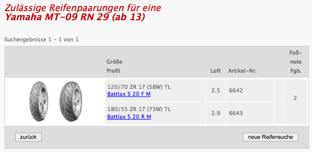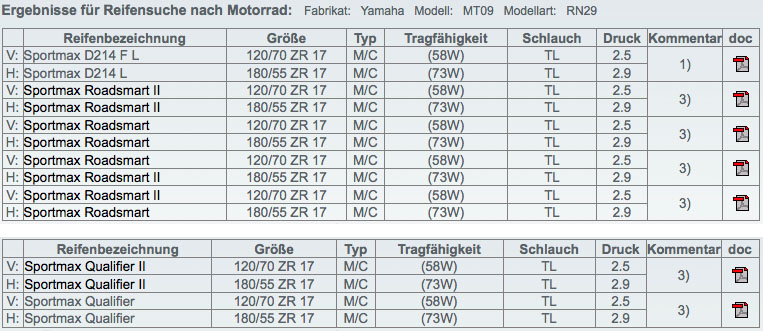Heute auf der Zulassungsstelle die MT angemeldet und fest gestellt das in den Papieren keine Reifen(marken) stehen. Auf meine Nachfrage wurde mir erklärt das im Rahmen der EU Homologisierung keine Reifenbindung in den Fahrzeugpapieren mehr gibt, ich also ohne gesonderte Freigabe jeden Reifen der passenden Dimensionen aufziehen darf. Wie ist dazu euer Kenntnisstand? Letztendlich stehen nur in der Betriebsanleitung der Bridgestone s20 und der Dunlop (?) als "Empfehlung". Werden die Reifenhersteller die Kosten auf sich nehmen und - wenn nicht notwendig - Reifen für bestimmte Motorräder testet und dann Freigaben erteilen?