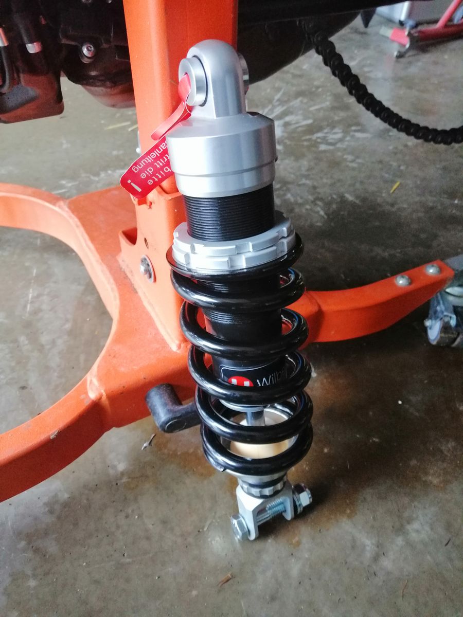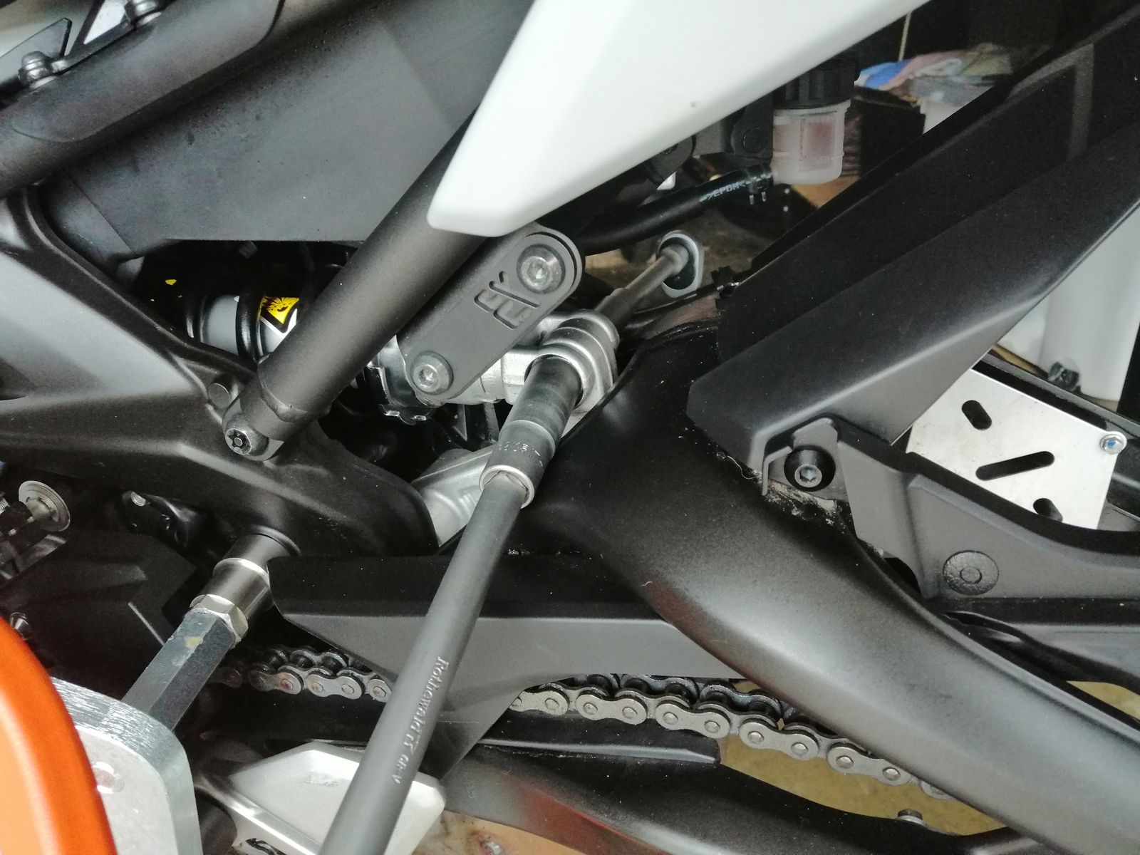 Beim Einfädeln der Dorne hilft es den Hebelarm etwas hin und her zu bewegen und das Motorrad etwas hin und her zu kippeln.